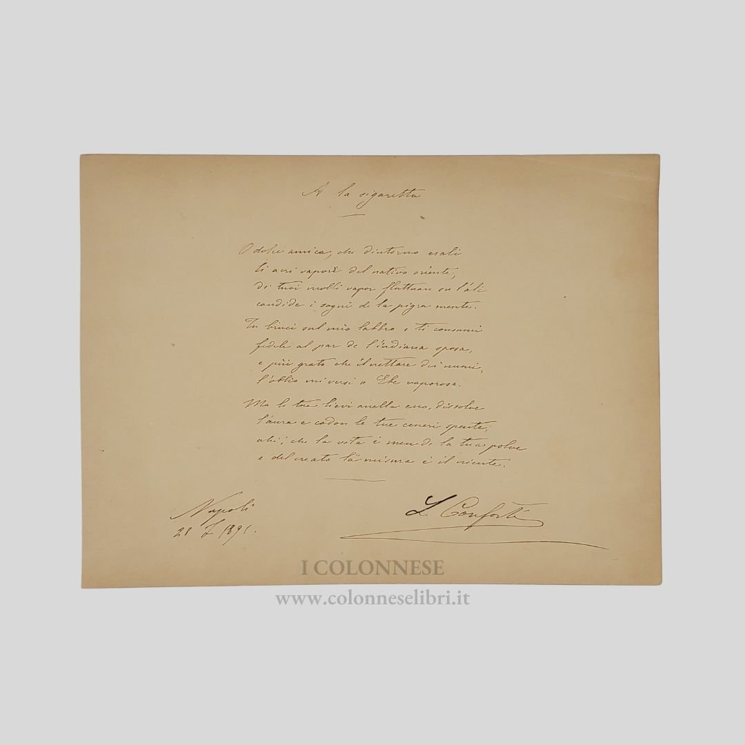 A la sigaretta. Inedito componimento poetico autografo firmato. Datato "Napoli, 28/7/1895".