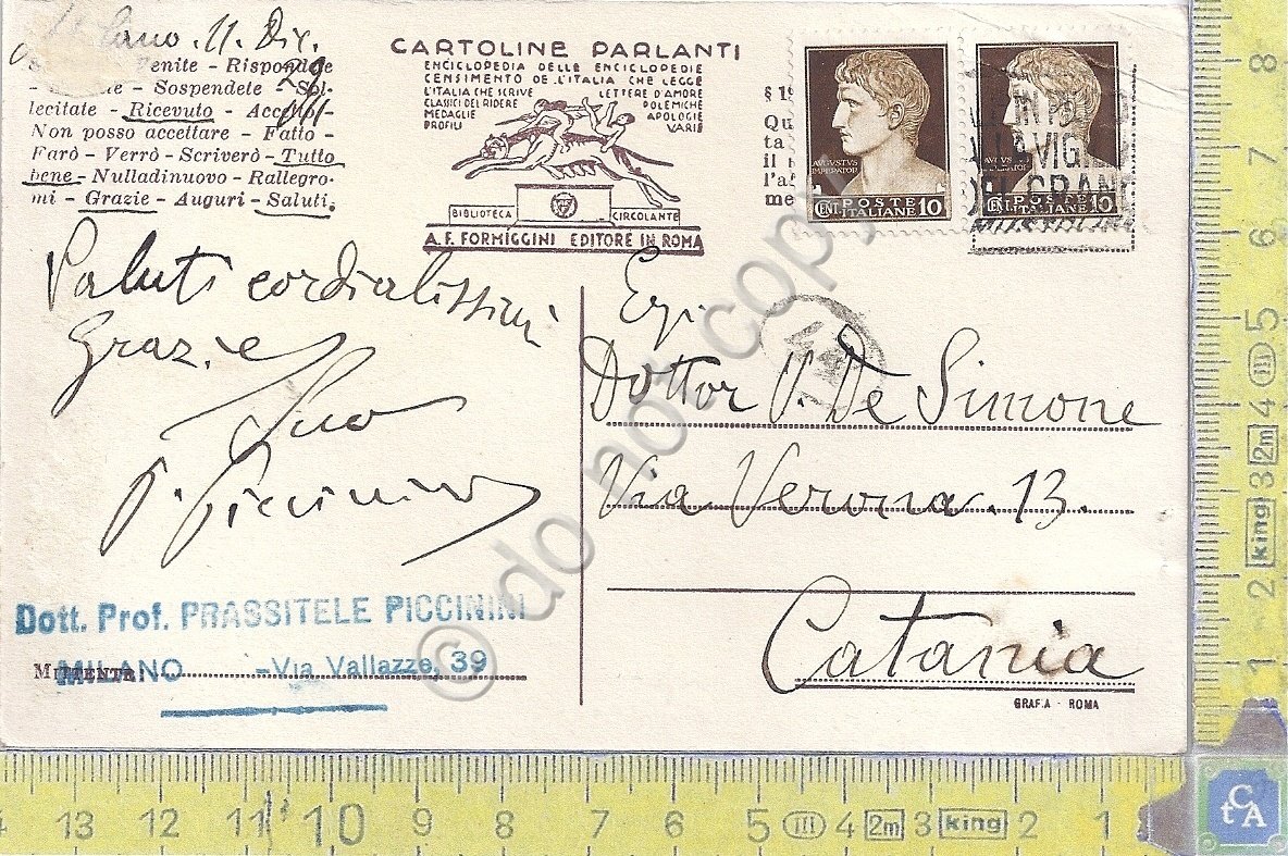 Autografo - Autograph - Prassitele Piccinini - Medico e Idrologo - 1929