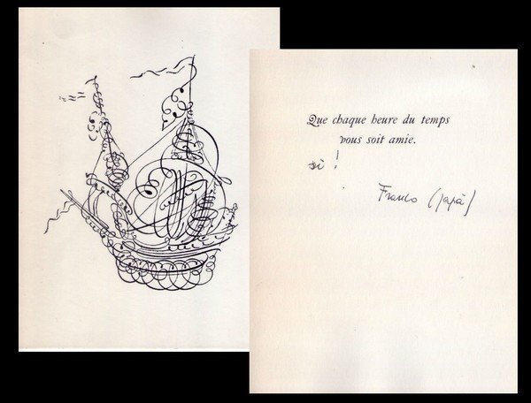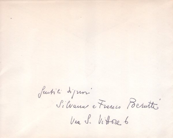 Biglietto litografico con dedica di Franco Berutti al figlio + busta