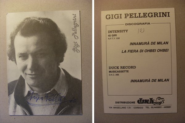 Cartolina autografata / autografo GIGI PELLEGRINI. Discografia
