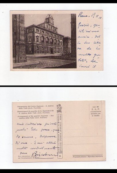 Cartolina manoscritta e firmata Umberto Biscottini (scrittore)