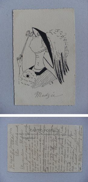Cartolina "Medzée" disegnata e spedita da L. Baron 1914