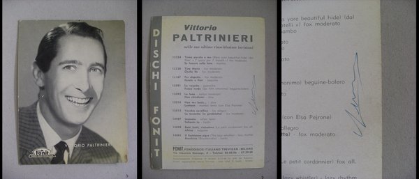 Cartolina / postcard VITTORIO PALTRINIERI con autografo. Dischi FONIT Fonodisco Italiano Trevisan MILANO