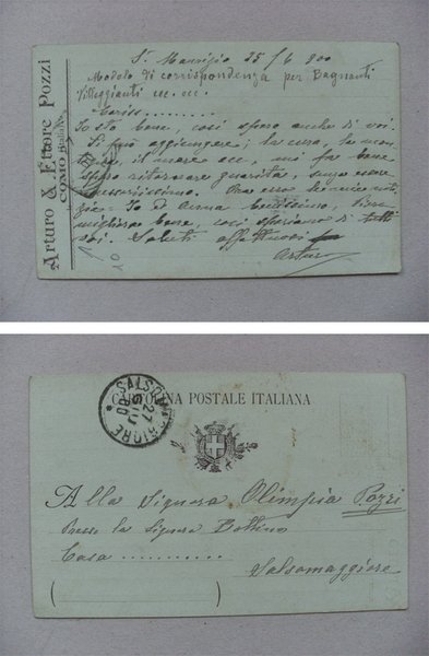Cartolina spedita e firmata da ARTURO POZZI 1900 (Arturo & Ettore Pozzi COMO)