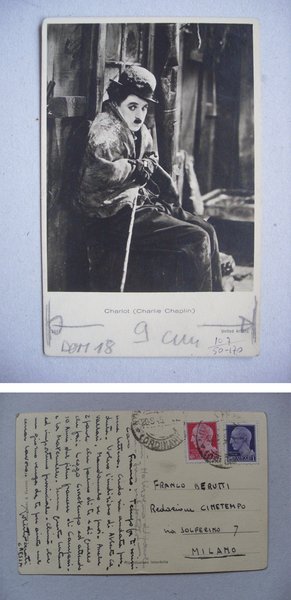 Cartolina spedita e firmata da Roberto Cerati Cressa (scrittore) 1945 "Charlot - Charlie Chaplin"