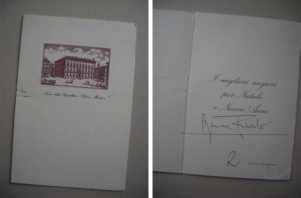 Cartoncino augurale firmato Senatore AJMONE FINESTRA - Senato della Repubblica Palazzo Madama
