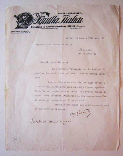Comunicazione SQUILLA ITALIA Berna (Svizzera) Organo di stampa fascista nel Ticino. 1929.