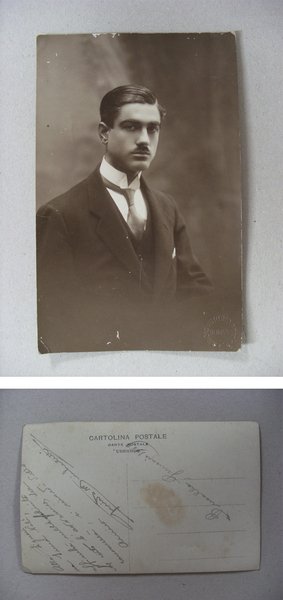 Foto / fotografia formato cartolina GUIDO MICHELETTI scritta e autografata dallo stesso (Arizio Vittorio Fotografo Genova)