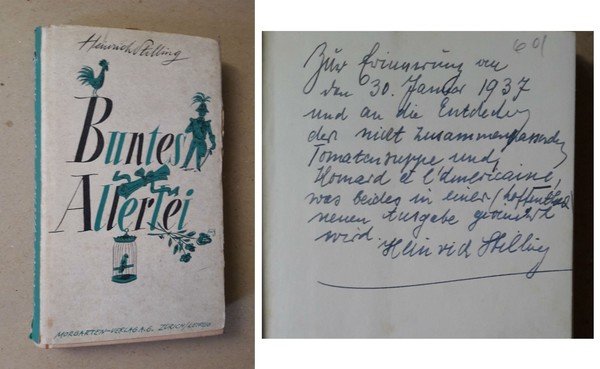 Heinrich Stilling. Buntes Allerlei. Sieben Kurzgeschichten. Dedica e firma dell'autore. 1937