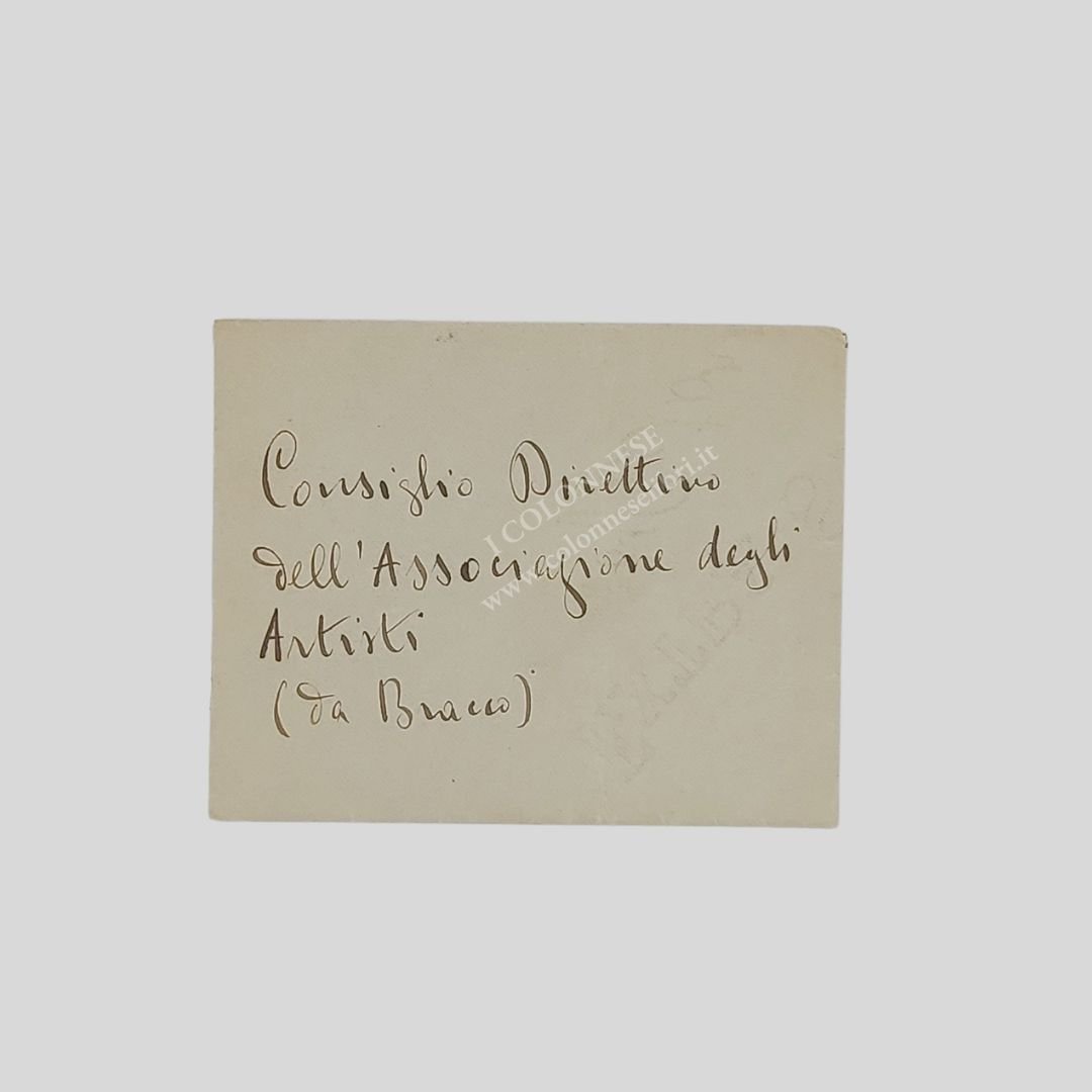 Lettera autografa firmata, datata ’27 luglio 1916', completa di busta. Indirizzata al “Consiglio Direttivo dell’Associazione degli Artisti”.