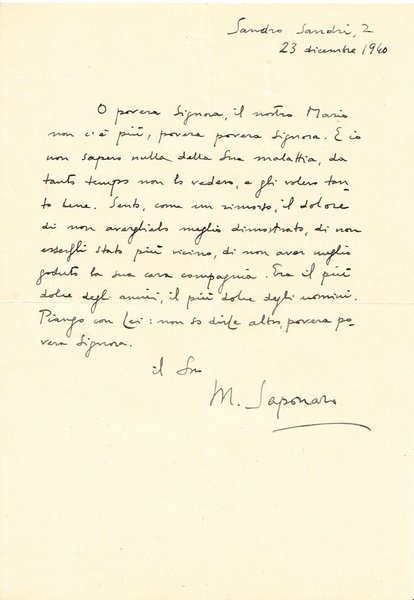 lettera manoscritta e firmata di 1 facciata datata 23 Dicembre 1940; buon es.