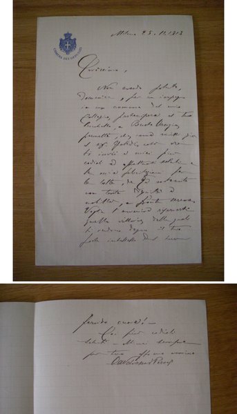 VALVASSORI PERONI ANGELO. Lettera manoscritta e firmata su carta intestata Camera dei Deputati. 1913