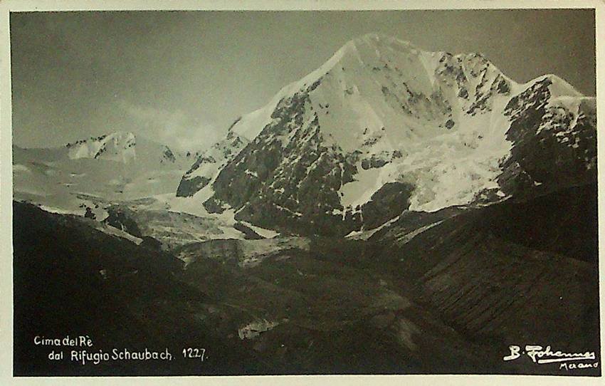 Cartolina postale di piccolo formato con al recto stampa alla gelatina ai sali d'argento e al verso griglia cartolina con dati del fotografo, timbri di rifugio ed annotazioni di misure 140x90 mm ca. Condizioni : USATO - Stato : Buono, ordinari segni d'uso e del tempo. Altre note : La fotografia è stampata da una lastra di una celebre veduta ottocentesca dello stesso fotografo.