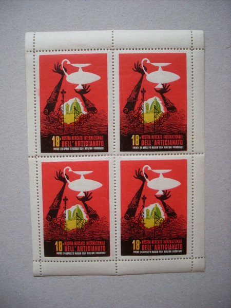 "18°Mostra Mercato Internazionale dell´Artigianato.FIRENZE 1954 Riduzioni Ferroviarie" Quartina / Foglietto di ERINNOFILI
