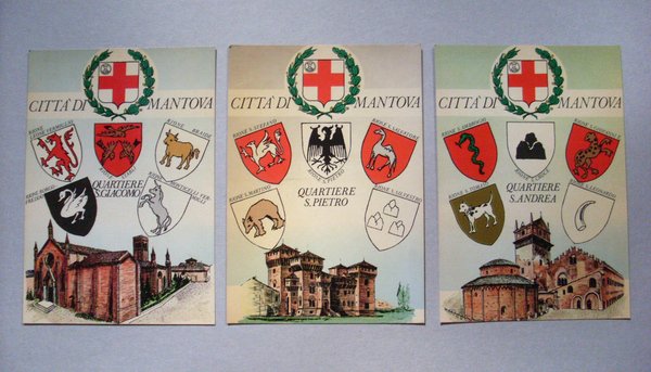3 Cartoline / postcards Città di MANTOVA. Quartiere S.Pietro - S.Giacomo - S.Andrea 1978