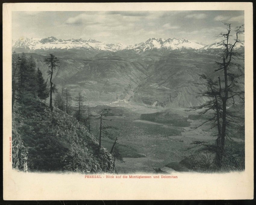 307. Penegal. Blick auf die Montiglerseen und Dolomiten.