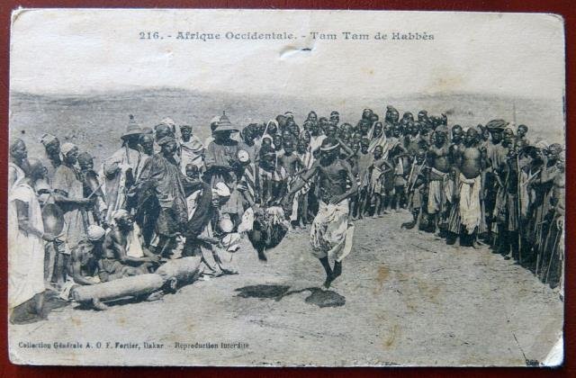 Colletion Générale A. O. F. Fertier, Dakar. Viaggiata al 1922. Bella cartolina raffigurante una danza tribale animata da un numerosissimo gruppo di danzatori. Abrasioni al verso hanno lasciato soltanto le scritte, un impercettibile taglio nella parte superiore, ben conservata tutta l'immagine.