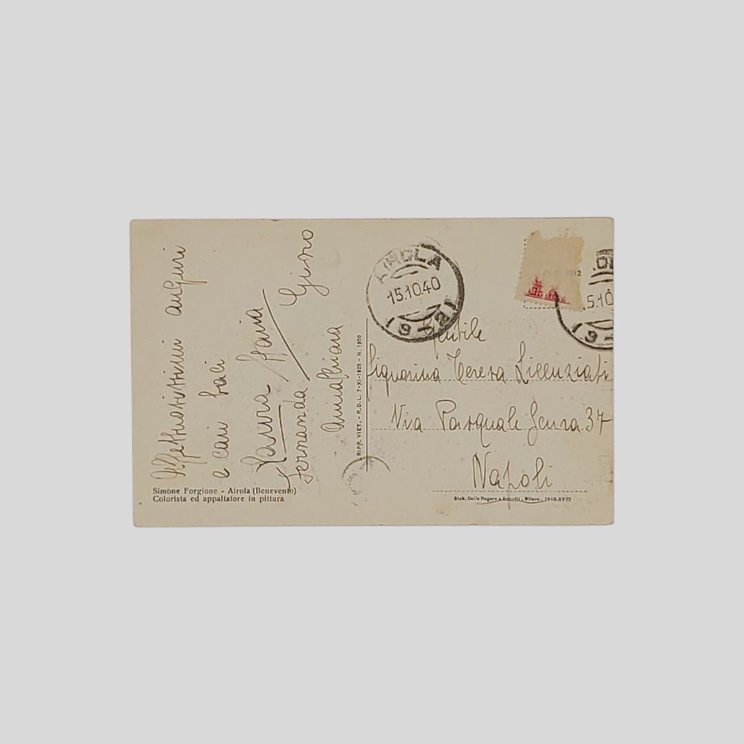 cm 14×9. Cartolina fotografica originale viaggiata, timbri, postalizzata il 15/4/1940, francobollo asportato. In buone condizioni.
