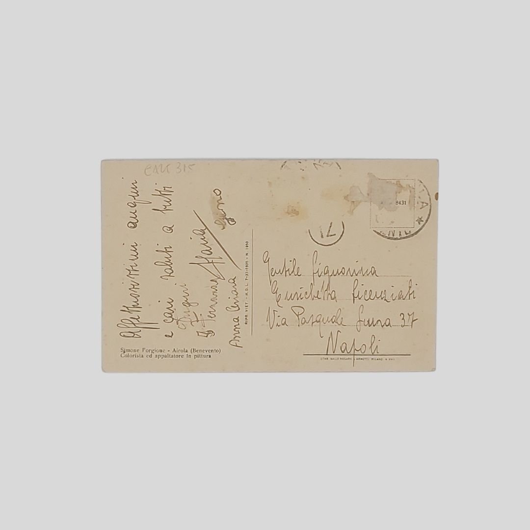 cm 14×9. Cartolina fotografica originale viaggiata, timbro, postale. Francobollo asportato. Tracce d'uso.