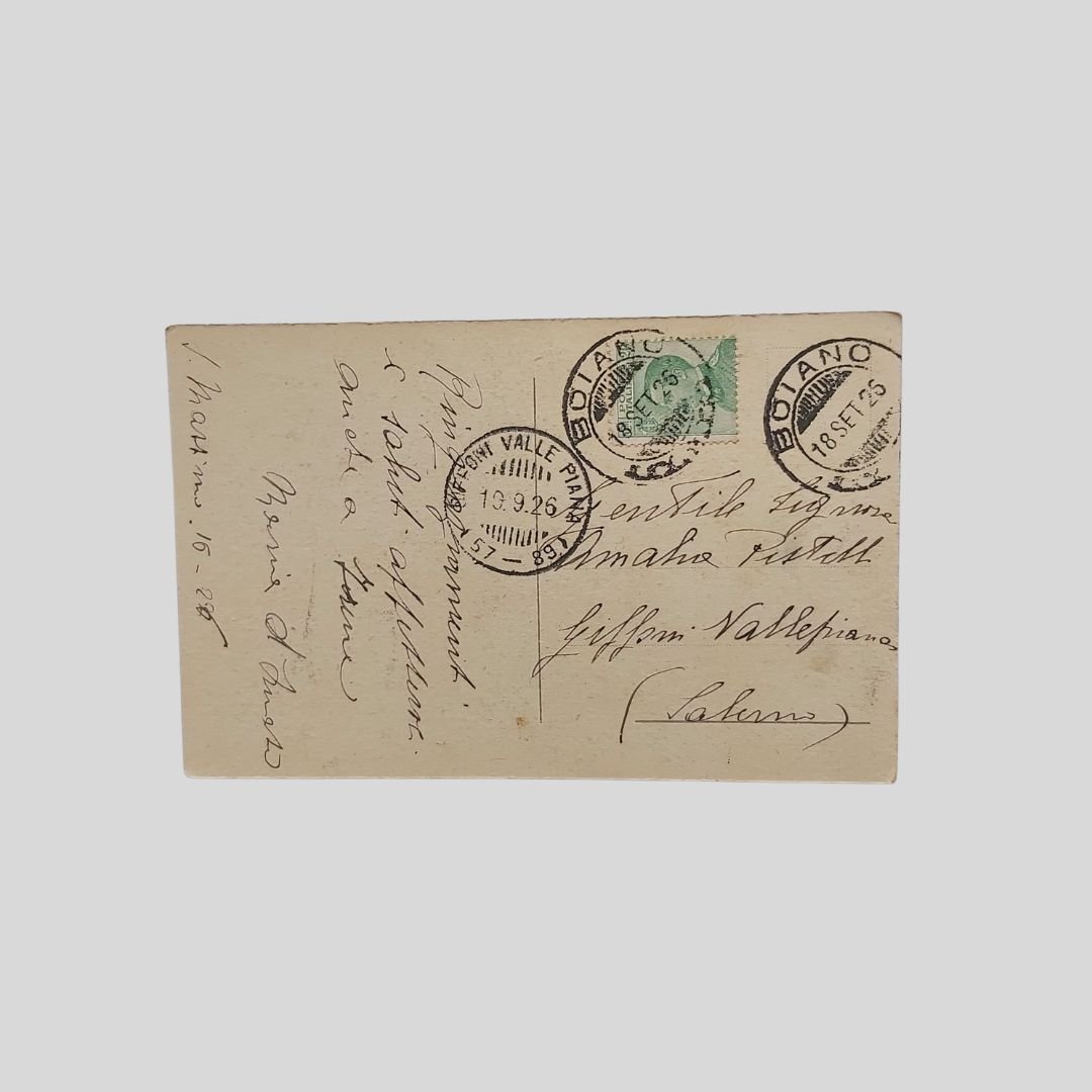 Cartolina d’epoca. Viaggiata, invio del 16/9/1926, cm 14×9. Francobollo, timbri. In buone condizioni. Da un opera di Egisto Ferroni.