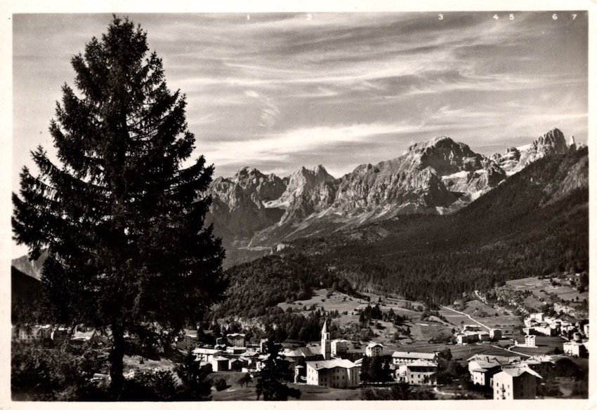 Andalo m. 1042 (Dolomiti di Brenta - Trentino); 1) C. Ghez - 2) Dalum - 3) Daino - 4) Ambiès - 5) Br. Bassa - 6) Alta - 7) Camp. Basso.