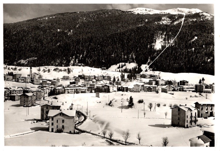 Andalo m. 1042 (Trentino) Veduta con la Paganella (m. 2124) ed i due tronchi della Cabinovia.