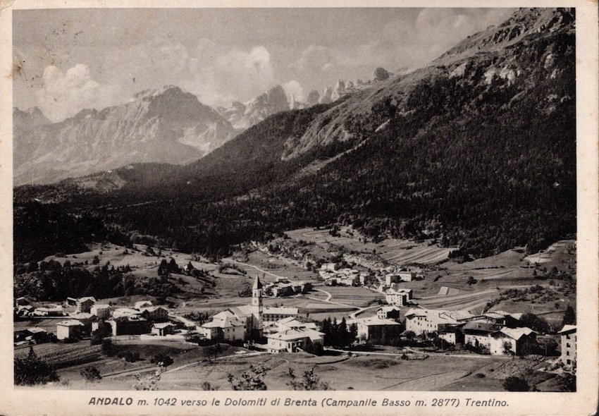 Andalo m. 1042 verso le Dolomiti di Brenta (Campanile Basso m. 2877) Trentino.