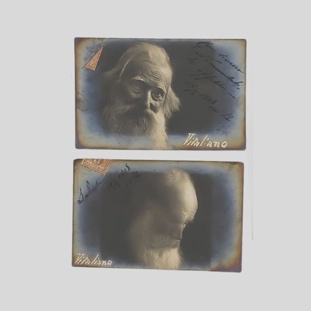 Foto cartoline undivided back, cm 14×9. Viaggiate. Francobolli e timbri, postalizzate tra il 17 e il 19 febbraio 1905. Segni di ossidazioni al recto. Non comuni. Stesso mittente e stesso destinatario. Invii, comprensivi di orari,o con inchiostro nero e firme del mittente con inchiostro bianco.