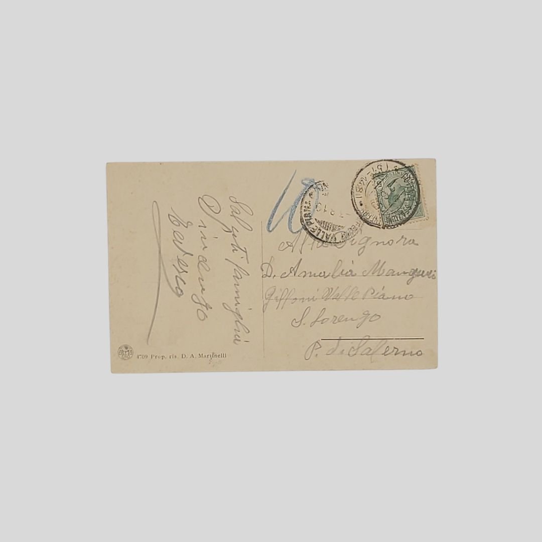 Cartolina d’epoca virata in seppia. Viaggiata. Ed. D. A. Martinelli, cm 14×9. Francobollo, timbri, postalizzata il 3/8/1919. In buone condizioni. Rara e ricercata.