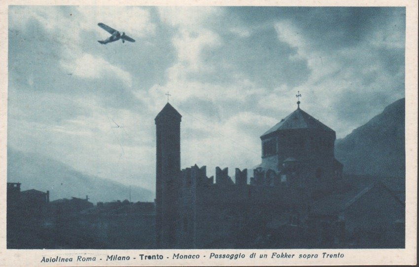 Aviolinea Roma - Milano - Trento - Monaco - Passaggio di un Fokker sopra Trento.