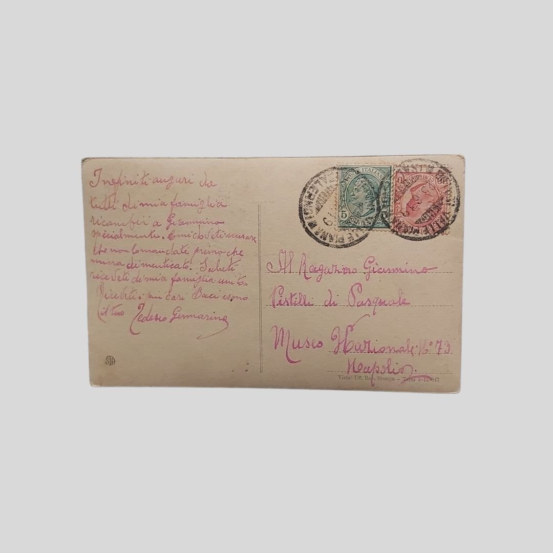 Cartolina fotografica d’epoca. Viaggiata, cm 8,5×13,8. Terni, Alterocca. Francobollo, timbri (25/6/1919). Lievemente ondulata.