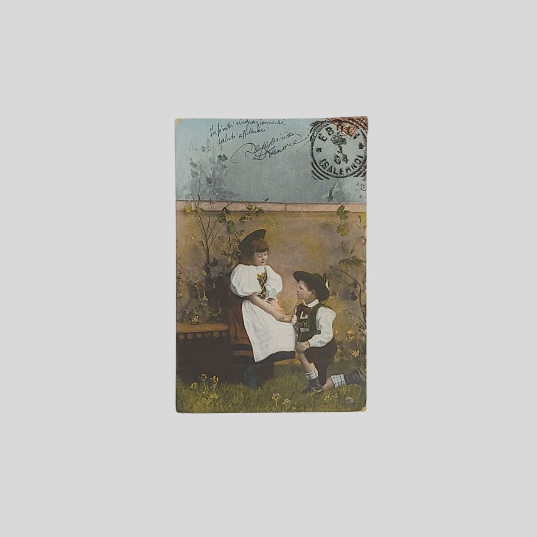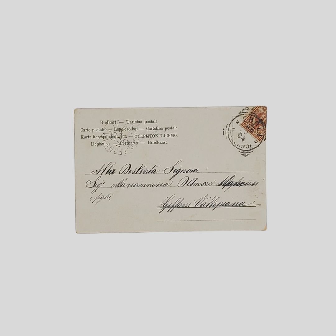 Cartolina d’epoca. Undivided back. Viaggiata, cm 9×14. Francobollo, timbri (25/3/1904). Tracce d’uso agli angoli.