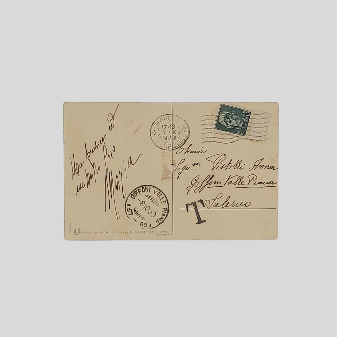cm 14×9. Cartolina d’epoca. Viaggiata. Francobollo, timbri (8/10/1930). Piccola piegatura all’angolo superiore.