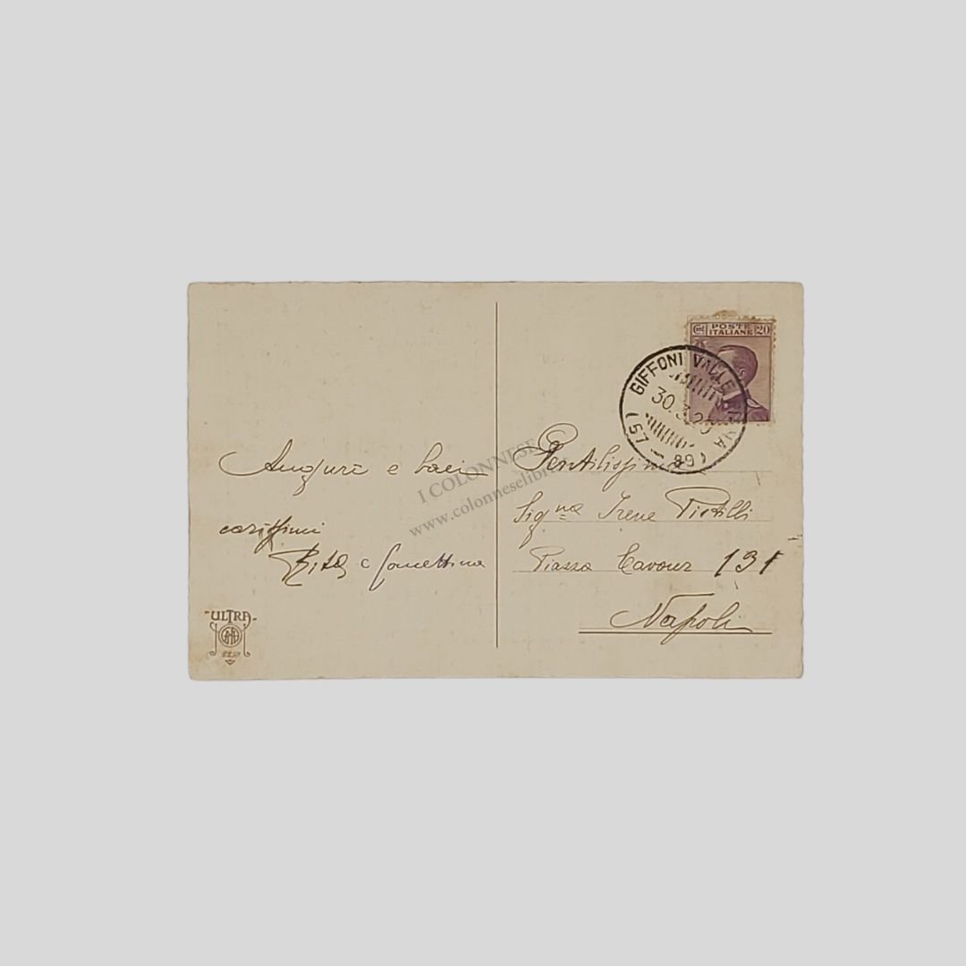 Cartolina d’epoca a firma Emilio Colombo. Viaggiata, cm 14×9. Francobollo e timbro, postalizzata il 30/3/1929. Tracce d’uso al margine inferiore.