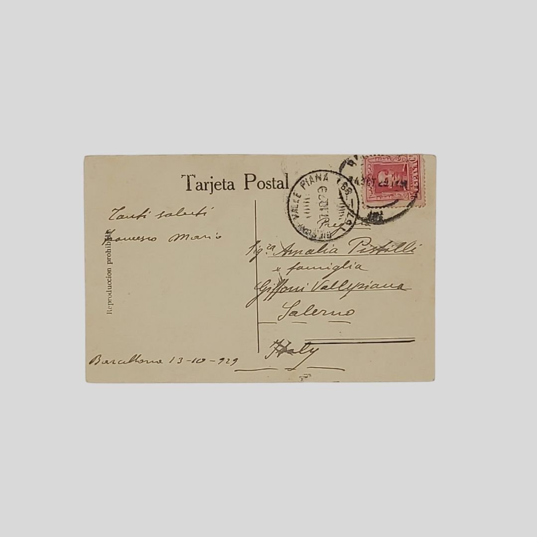 Cartolina fotografica originale viaggiata. Fot. L. Roisin, s.d. (anni ’20), cm 14×9, timbri, francobollo. Datata 13/10/1929. Leggermente ondulata.