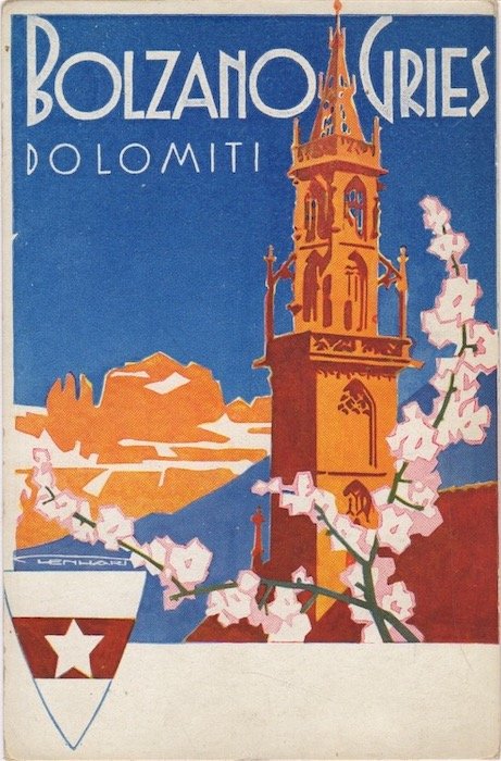Cartolina a colori di misure 142x92 mm. Condizioni : USATO - Stato : Buono, ordinari segni d'uso e del tempo, timbretto privato al verso. Altre note : Non viaggiata. Lenhart (Bad Haring, 1898 " Merano, 1992). Pittore ritrattista, cartellonista. Compie gli studi all'Accademia di Belle Arti di Vienna e a quella di Firenze. Ottenuta la cittadinanza italiana, si trasferisce a Merano dove inizia a lavorare come insegnante di disegno. Ben presto si dedica ai temi della propaganda turistica e realizza una numerosa serie di manifesti sui temi della montagna con particolare riferimento allo sci. A partire dagli anni Sessanta si dedica quasi esclusivamente alla pittura.