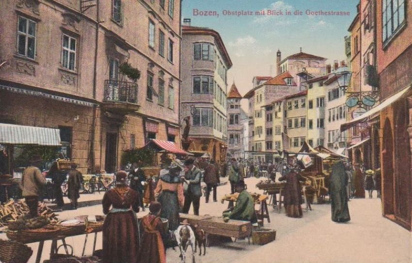 Bozen, Obstplatz mit Blick in die Goethestrasse.