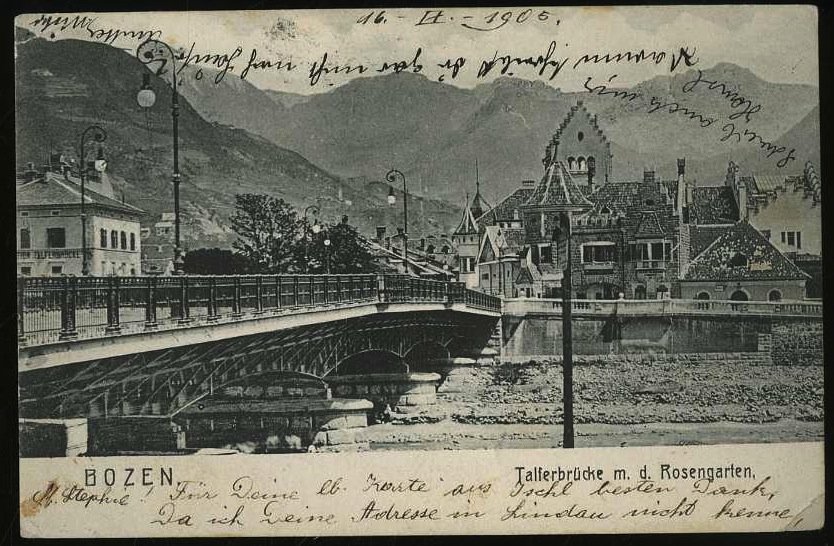 Bozen. Talferbrücke m. d. Rosengarten.