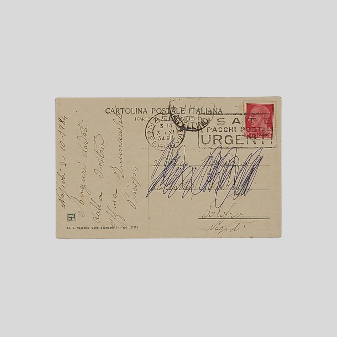 cm 14x9. Cartolina fotografica originale viaggiata, timbri, francobollo. Datata il 2/10/1934. Tracce d'uso agli angoli.