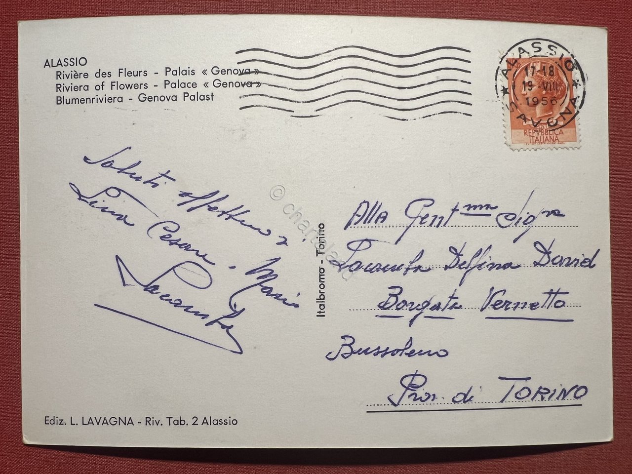 Cartolina - Alassio ( Savona ) - Riviera dei Fiori - Palazzo Genova - 1956