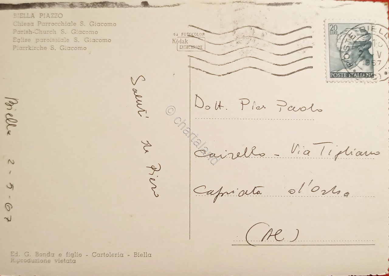 Cartolina - Biella Piazzo - Chiesa Parrocchiale S. Giacomo - 1967 | Cartoline |