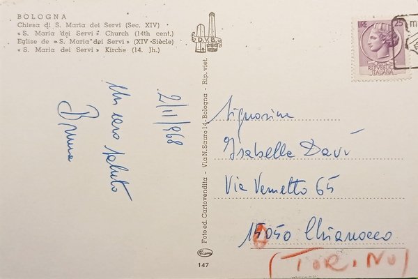 Cartolina - Bologna - Chiesa di S. Maria dei Servi - 1968