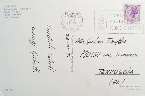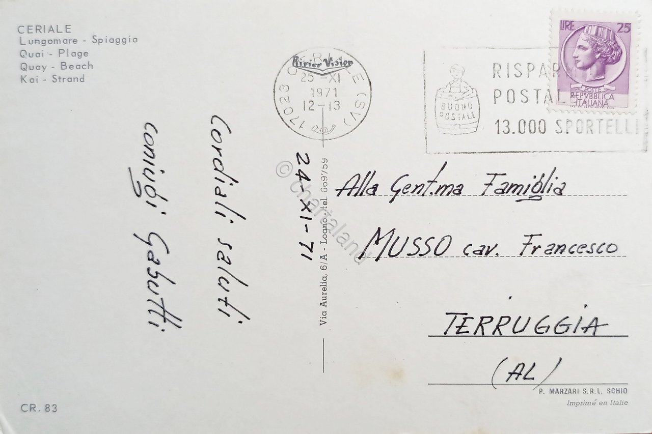 Cartolina - Ceriale - Lungomare - Spiaggia - 1971