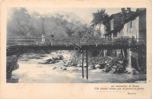 Cartolina - Postcard - ponte e fiume - Animata - Poesia Dante - anni '20