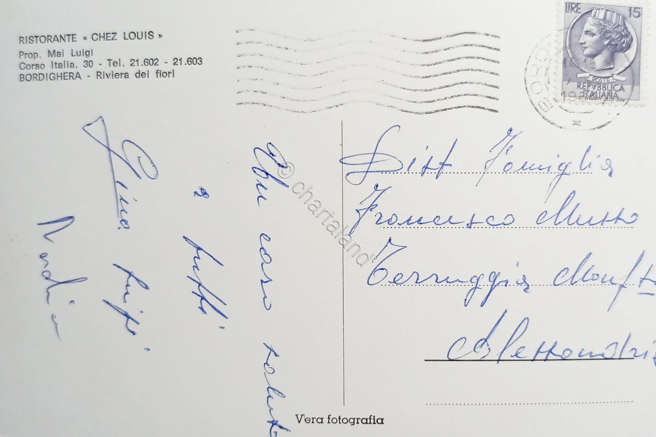 Cartolina - Ristorante Chez Louis - Bordighera - Riviera dei Fiori - 1966