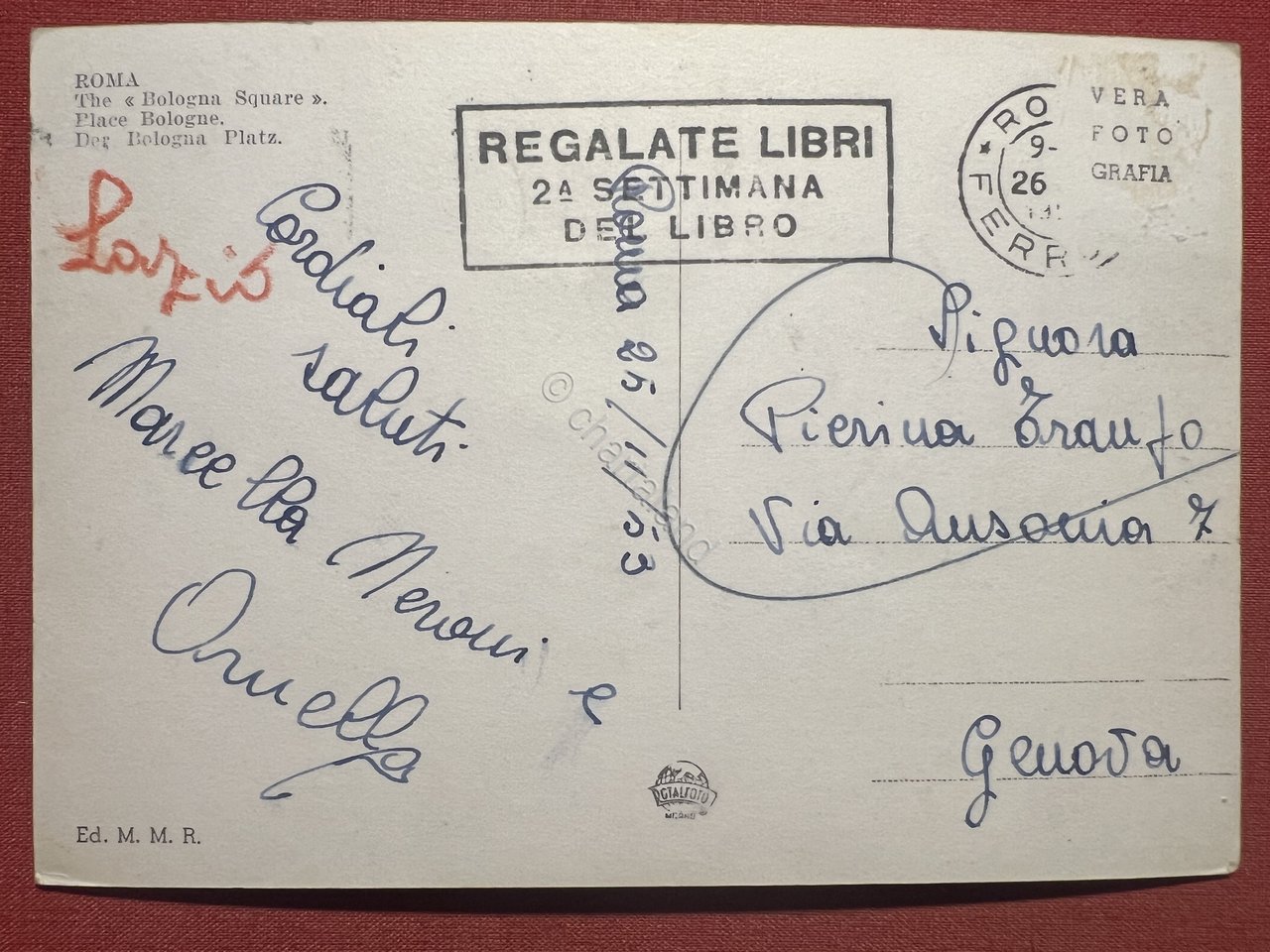 Cartolina - Roma - Piazza Bologna - 1953