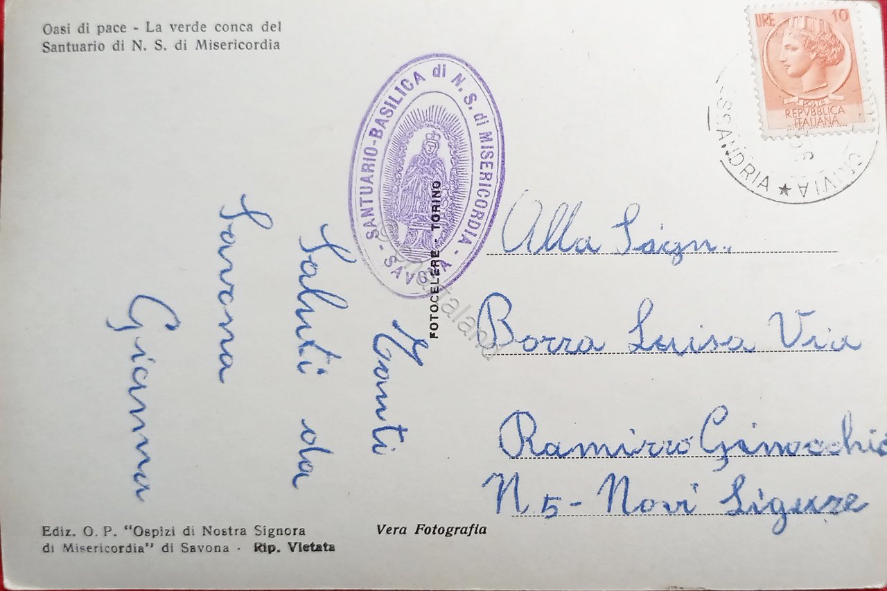 Cartolina - Santuario di Savona - Oasi di Pace - 1956