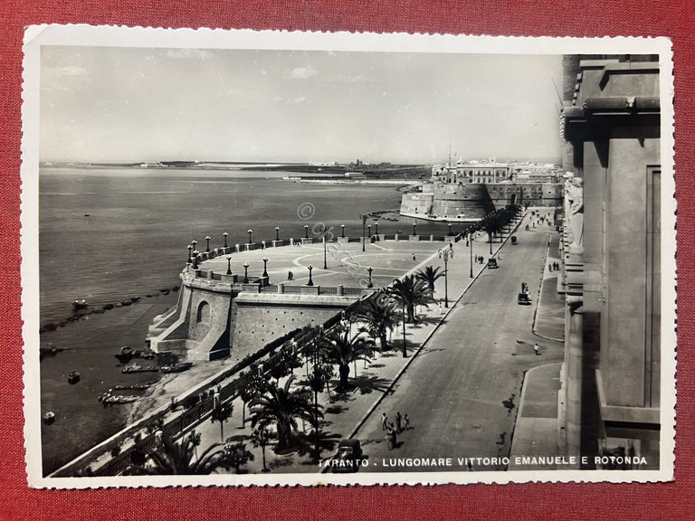 Cartolina - Taranto - Lungomare Vittorio Emanuele e Rotonda - 1940