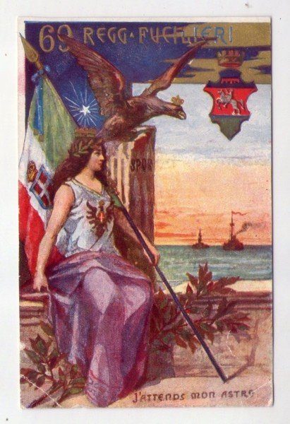 Cartolina 69* Reggimento Fucilieri "J'attends mon astre". Primi '900