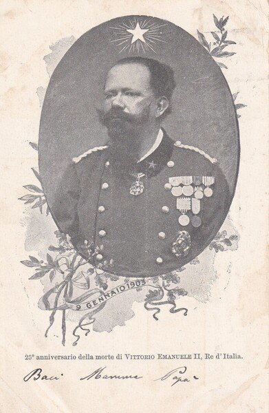 Cartolina 9 gennaio 1903 - 25° Anniversario della morte di Vittorio Emanuele II, Re d'Italia.